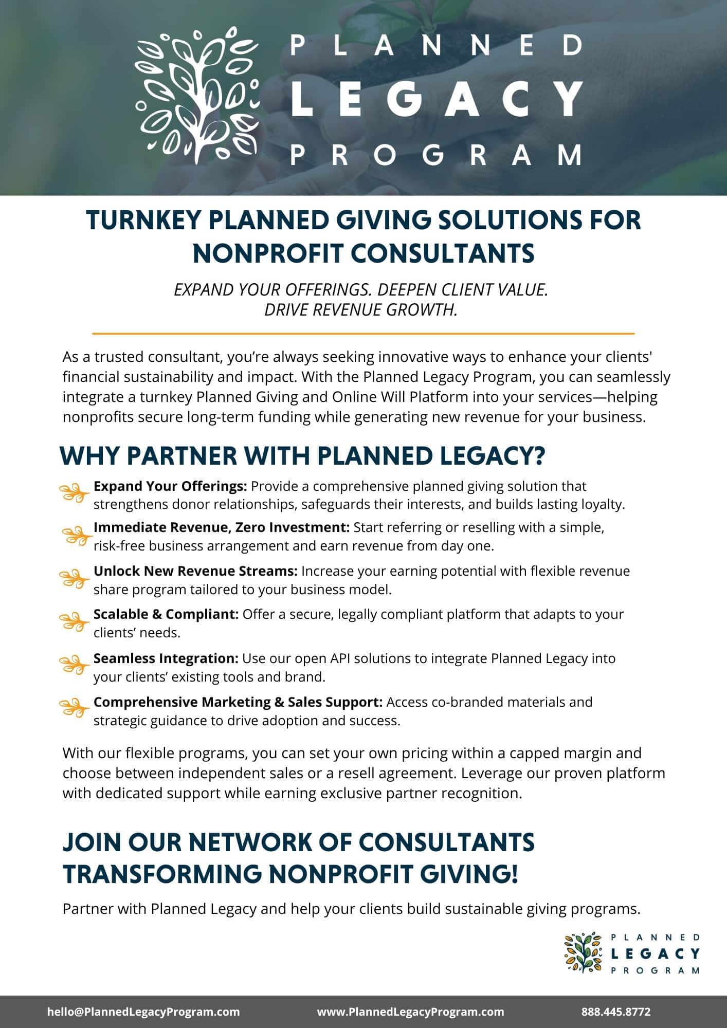 By providing a lifelong document that protects their families, your organization builds a deeper bond and commitment with supporters. This act of stewardship strengthens relationships and opens the door to lasting impact. With the Planned Legacy Program, nonprofits gain more than a tool—they gain an opportunity to inspire supporters, empower giving, and sustain their future.
